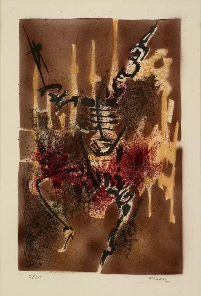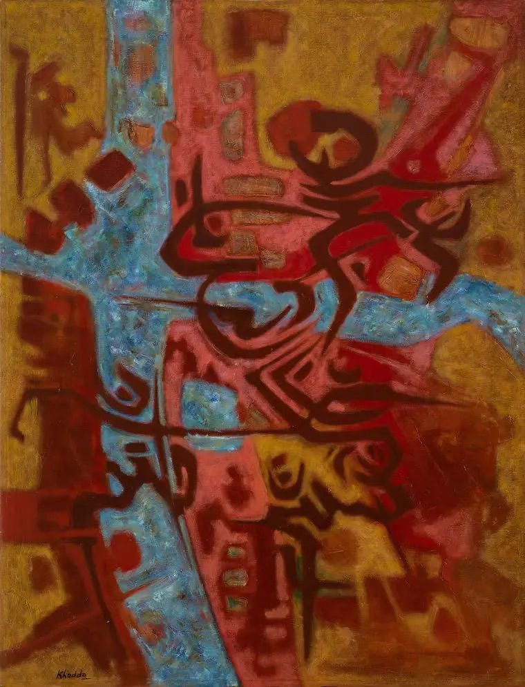 By 1963, Khadda chose to return to Algeria, decisively leaving Paris and embedding himself in the post-independence national art scene. Soon after his return he became a founding figure in the local art movement known as the “School of the Sign”, which championed abstraction and the expressive value of the calligraphic mark over figurative representation. Through this movement and his writings, Khadda helped establish a uniquely modern Algerian art language - one that carried the echoes of his Paris years into a new national cultural context.