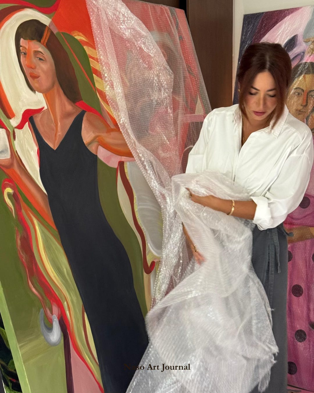 Although she began painting as a child and took courses as a teenager, her formal training led her into interior design—a field she pursued for several years before realizing its limitations in terms of personal expression. In 2019, she made the definitive choice to dedicate herself to art. “It became clear to me that this was not only my passion,” she reflects, “but also the most honest and fulfilling way to express my thoughts and experiences.”