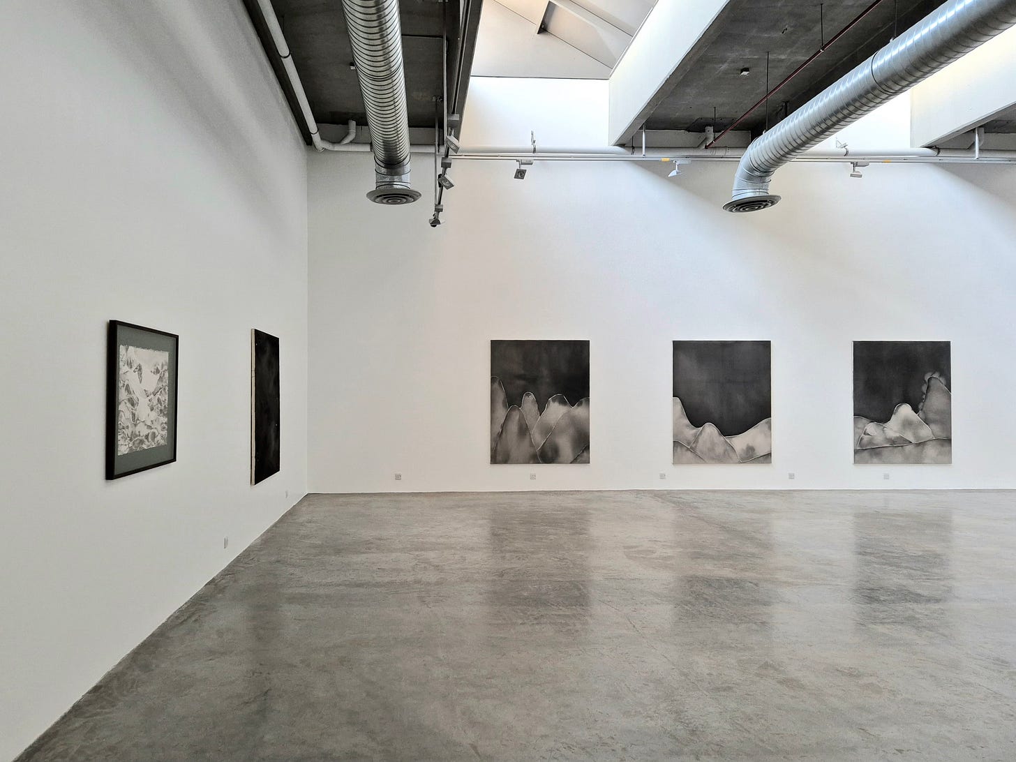 “When working on this piece, I was interested in what happens when charged moments and images that induce anger, rage or disgust are abstracted, diluted, distorted, broken down, repeated, and reconfigured. This painting started out with a series of photographs sourced from social media, national and international news, or WhatsApp broadcast messages. They emerged after a fight erupted in a legal session where the accuser proceeded to yell profanities, throw papers and eventually, his shoe at the accused. Photos of the fight immediately went viral online, both locally and in international news. My process began by saving these photographs, drawing them on paper and inserting them into digital programs like Procreate or Photoshop, cutting out and manipulating the figures and shapes, and reconfiguring them into a new composition. This image is further abstracted by painting it on paper with ink and very minimal brushstrokes and control, diluting them figuratively and conceptually until they form blobs or masses that begin to look like landscapes. These “landscapes” are then blown up into larger scale paintings where they are further abstracted, layered and built upon slowly to reveal their final forms.”