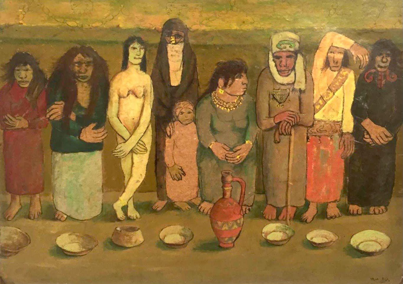 While indebted to Breton's Parisian Surrealism, Egyptian artists transformed its methods to address local struggles. Ramses Younan, for example, created paintings and drawings of fragmented, almost skeletal figures, reflecting both psychological dislocation and the violence of political oppression. Kamel El-Telmissany brought Surrealist experimentation into cinema and visual art, exploring distorted forms and nightmarish imagery. Inji Efflatoun, one of the youngest members of the movement, infused her early works with dreamlike, unsettling motifs before shifting toward social realism in the 1950s.